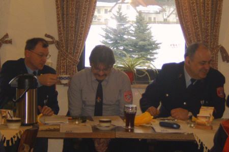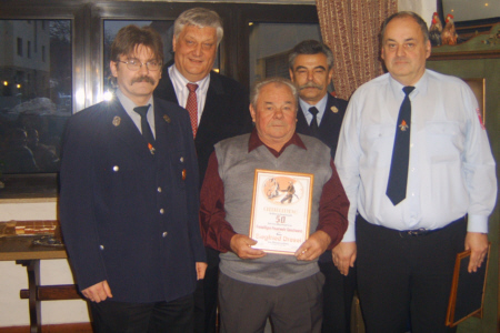 | Bei der Jahreshauptversammlung der FFW Geschwand, die am 06. Januar 2006 im Vereinslokal Gasthof "Alter Wirt" in Geschwand stattfand, wurden die Feuerwehrkameraden Siegfried Dresel, Willi Hauptmann und Alfred Reichold für 50 Jahre Mitgliedschaft in der Feuerwehr geehrt. Mit 45 anwesenden Feuerwehrkameraden war es eine der bestbesuchten Versammlungen. | ||||