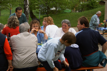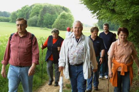 | Am 21. Mai 2005 veranstaltete der Fränkische Schweiz Verein Geschwand seine traditionelle Frühlingswanderung mit anschließendem Dorffest. Bei herrlichem Wetter nahmen 43 Naturfreunde an der Wanderung teil. Anschließend traf man sich bei Wein und Bier und Gegrilltem zum ersten Mal auf dem Schulhof zum gemütlichen Beisammensein. |