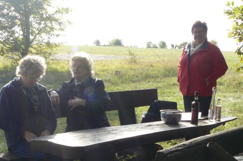 | Auf Einladung von Georg Wiesheier aus Hirschaid, dessen Wurzeln in Geschwand liegen, und dessen Frau Hildegard führte die traditionelle Herbstwanderung des FSV Geschwand die 36 Wanderfreunde am 03. Oktober 2013 auf die "Friesener Warte". Bei kühlem aber sonnigem und trockenem Herbstwetter konnten die FSV-ler wunderbare Aussichten auf Bamberg und der Umgebung genießen. Gleich bei der Ankunft mit dem Bus wurden die Wanderfreunde mit einem Buffet aus Kaffee und Kuchen und einer kleinen Brotzeit empfangen und auch während der Wanderung gab es "Verpflegungsstationen". Die Friesener Warte ist ein 561m hoher Berg der