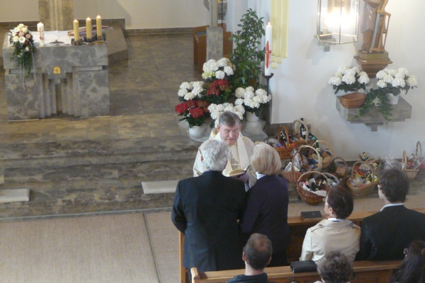 Ostergottesdienst mit drei Liedern. Fast auf dem Tag genau vor fünzig Jahren gaben sich Paula Lodes aus Obertrubach und Andreas Eckert aus Geschwand in der Filialkirche "Mariä Himmelfahrt" in Geschwand das Ja-Wort. Dem Jubelpaar zu Ehren sang der Gesangverein "Gemütlichkeit" Geschwand in der Kirche die beiden Lieder "Liebe ist unendlich" und das "Ave-Glöcklein". Im Rahmen des traditionellen kleinen