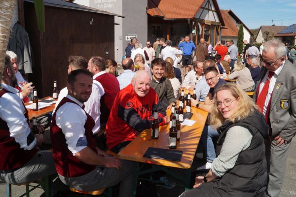 | Der Gesangverein Gemütlichkeit Geschwand nach dem Ostergottesdienst 2025 am Osterbrunnen in Bieberbach |