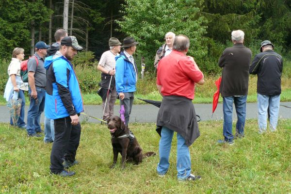 Die kleine Wandergruppe am Waldesrand am Truwier-Weg