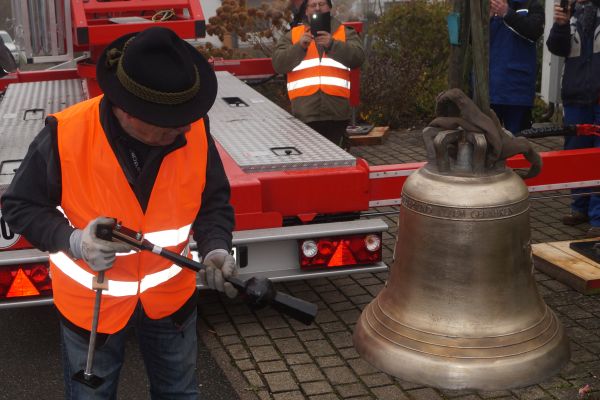 "Anschlagen" der zweiten Glocke "Heilige Cäcilie"