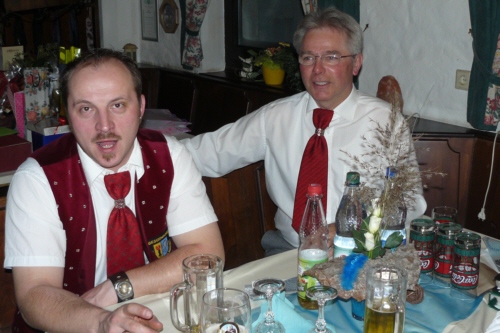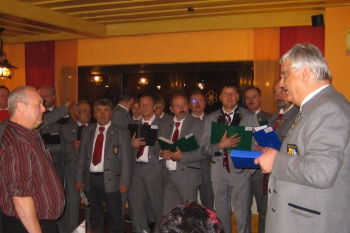 | Eine eigens zum 50. Geburtstag von Bernhard Arnold umgetextete Version des aus Irland stammenden Volksliedes "Lang ist es her" von Thomas Haynes Bayla aus dem 19. Jahrhundert als Ständchen vom Gesangverein "Gemütlichkeit" Geschwand. |